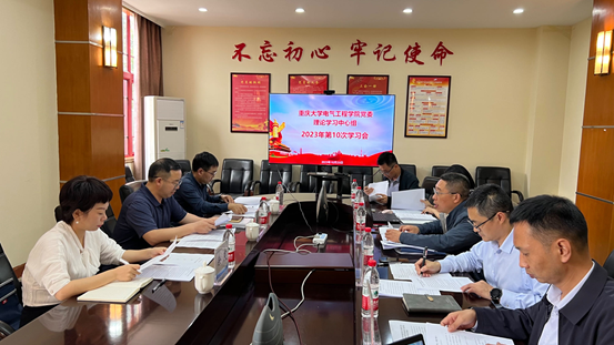 2023年10月23日下午,无码av 党委召开2023年第10次理论学习中心组集中学习会,会议由学院党委书记胡建林主持并讲话,院长谢开贵等中心组学习会成员参加。校党委宣传部常务副部长杨新涯、副部长周辉、理论干事徐爽列席旁听。