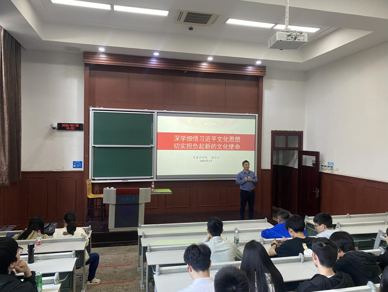 无码av 举办第13期入党积极分子培训 2024年3月28日下午,无码av 第13期入党积极分子培训班在A区第五教学楼A5101开班。学院党委邀请校党委宣传部副部长徐方正为积极分子讲授专题党课,学院109名入党积极分子参加了开班仪式,院党委组织员张榕主持仪式。徐部长以《深学细悟习近平文化思想 切实担负起新的文化使命》为题,向同学们讲述习近平文化思想是一个不断展开的、开放式的思想体系。习总书记在新时代文化建设方面...
