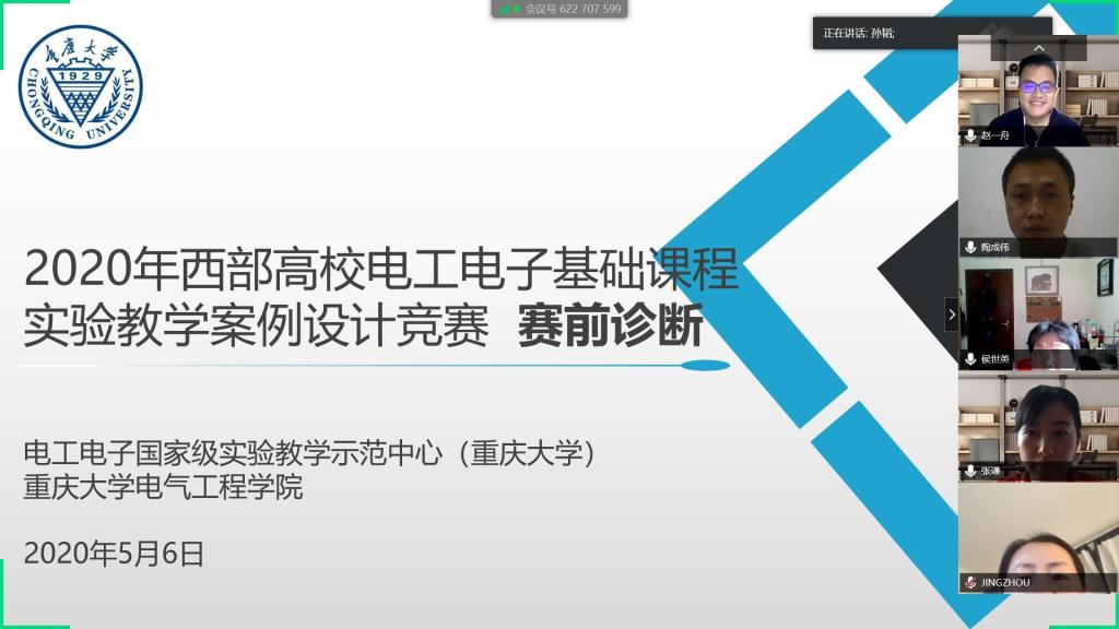 在全球新冠肺炎疫情依然严峻复杂的特殊时期,电工电子国家级实验教学示范中心实验教学团队于5月6日上午组织了关于“2020年西部高校电工电子基础课程实验教学案例选拔赛”的赛前诊断在线会议,会议利用腾讯会议平台,通过视频交流、屏幕分享的方式,对即将于5月10日参赛的两组实验教学案例作品进行赛前试讲和诊断。今年的西部选拔赛对于我校的参赛队伍至关重要,冲出此次选拔赛的队伍才可参加今年由我校承办的“2020年全国高校电...