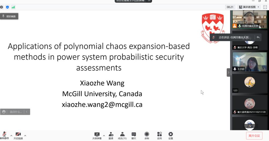 2021年12月11日上午,加拿大麦吉尔大学电子与计算机工程系助理教授王小喆受邀做客“成渝地区双城经济圈智慧能源大讲坛”,担任讲坛第六期的主讲嘉宾,以“Applications of Polynomial Chaos Expansion-based Methods in Power System Probabilistic Security Assessments”为主题开讲。本期讲坛由无码av 、输配电装备及系统安全与新技术国家重点实验室和无码av 溧阳智慧城市研究院主办,由成都地区的四川大学、电子科技大学...