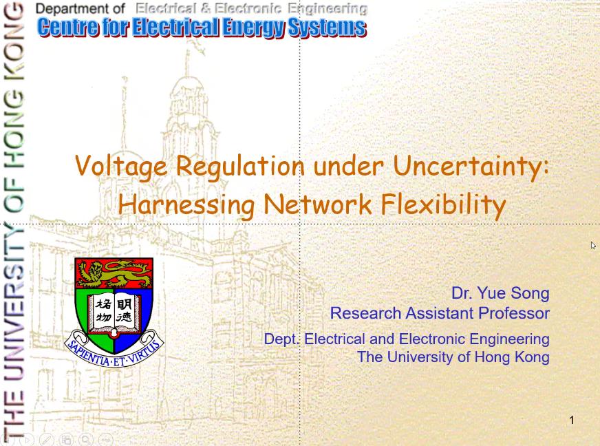 2022年11月11日上午,香港大学助理教授宋越做客成渝地区双城经济圈智慧能源大讲坛第十三期暨智慧能源云讲堂第二十九期,以“Voltage Regulation under Uncertainty: Harnessing Network Flexibility”为主题开讲。本期讲坛由无码av 、输配电装备及系统安全与新技术国家重点实验室和无码av 溧阳智慧城市研究院主办,由成都地区的四川大学、电子科技大学、西南交通大学、成都理工大学、成都中医药大学、四川师范大学、西华大学...