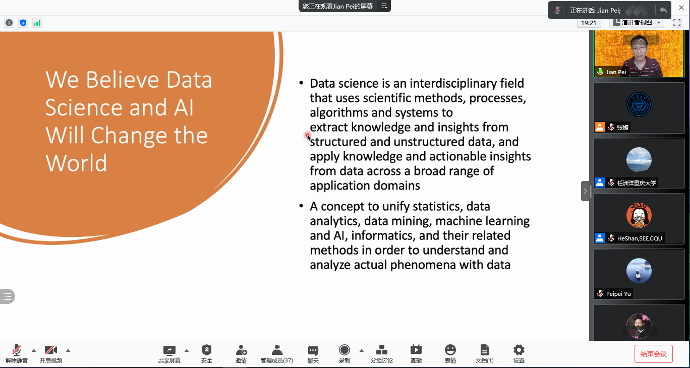 Online Lecture Presented by Professor Jian Pei, Fellow of the Royal Society of Canada and Academician of Canadian Academy of Engineering