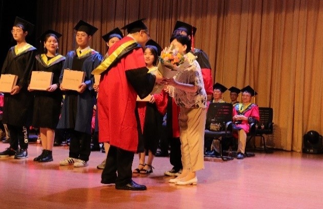Professor Wu Shaoqi, Chairman of the Education Fund Management Committee of Academician Sun Caixin, also delivered a speech. She congratulated the students for finishing a stage of the learning process and for achieving abundant academic success.