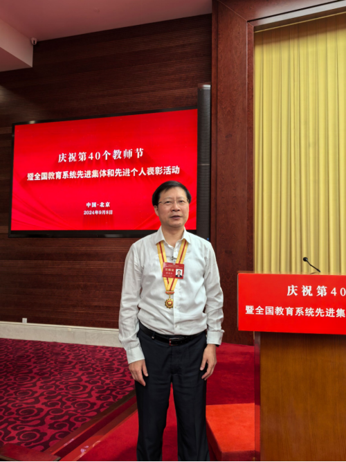 On the occasion of the 75th anniversary of the founding of the People's Republic of China and the 40th National Teachers' Day, a commendation ceremony was held in Beijing on September 8 to celebrate the 40th Teachers' Day and honor advanced collectives and individuals in the national education system. The event aimed to vigorously promote the spirit of educators, foster a strong social atmosphere of respecting teachers and valuing education, and inspire teachers and educators across the country to implement the fundamental task of fostering virtue through education and actively contribute to building a strong educational nation. A total of 585 units and 1,790 individuals were recognized at the ceremony. Professor Liao Ruijin from our institute attended the event as a representative of the recipients of the National Teaching Achievement Award.