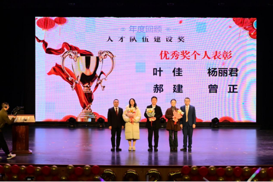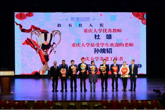 Subsequently, the school commended the outstanding individuals who had achieved remarkable results in teaching and research achievements, talent team building, and education during the 2023 - 2024 academic year. Party Secretary Hu Jianlin presented flowers to Liao Ruijin, the individual recipient of the first - prize and the Excellence Award of the National Teaching Achievement Award for Higher Education (Undergraduate) in 2022, and Xie Kaigui, the individual recipient of the first - prize and the Excellence Award of the Natural Science Award of the Outstanding Scientific Research Achievements Award for Colleges and Universities in 2021 and 2022, on behalf of the school, expressing gratitude for their arduous efforts in teaching and research, which propelled the school's academic development forward. Hu Jianlin and Xie Kaigui also presented flowers to the recipients of the Talent Team Building Award, such as Ye Jia, Yang Lijun, Hao Jian, and Zeng Zheng, thanking them for contributing to the development of the teaching staff and strengthening the foundation of the school. They also presented flowers to the recipients of the Education and Teaching Award, including Du Xiong, an outstanding teacher of Chongqing University, Sun Potao, the most popular teacher among students at Chongqing University, and Hao Jian, Lai Wei, Luo Min, Mao Kun, Sun Potao, Zhou Jing, and other advanced workers of Chongqing University, expressing gratitude for their dedication to teaching and nurturing students, guiding them to pursue their dreams.
