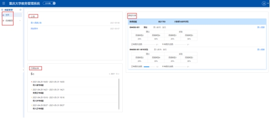 主页的左边是公告、日程安排的两个信息区块,右边是课程列表,教师可以点击课程对学生的成绩进行录入,
