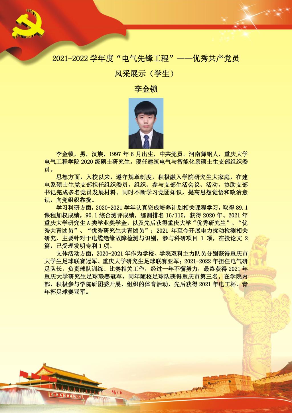 【党员风采】建筑电气与智能化系硕士生支部李金锁