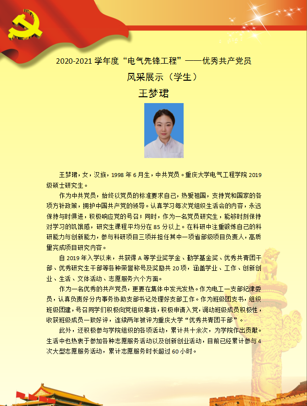 【党员风采】电工理论与新技术硕士生一支部王梦珺