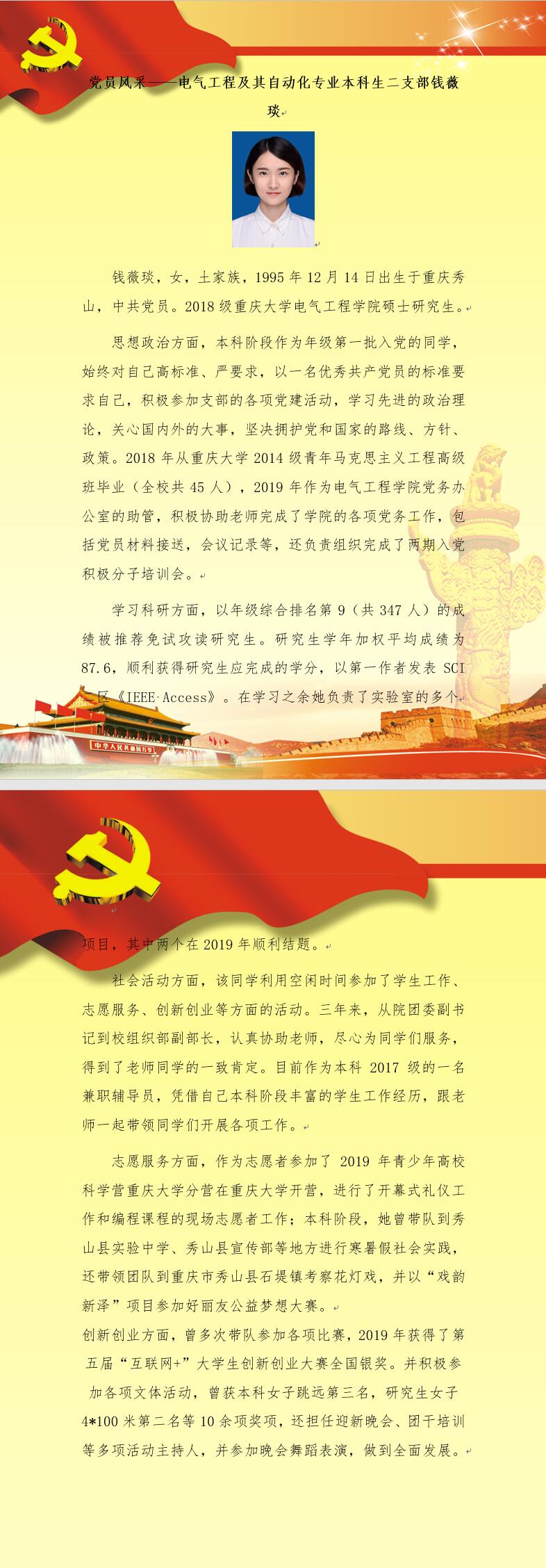 【党员风采】电气工程及其自动化专业本科生二支部钱薇琰
