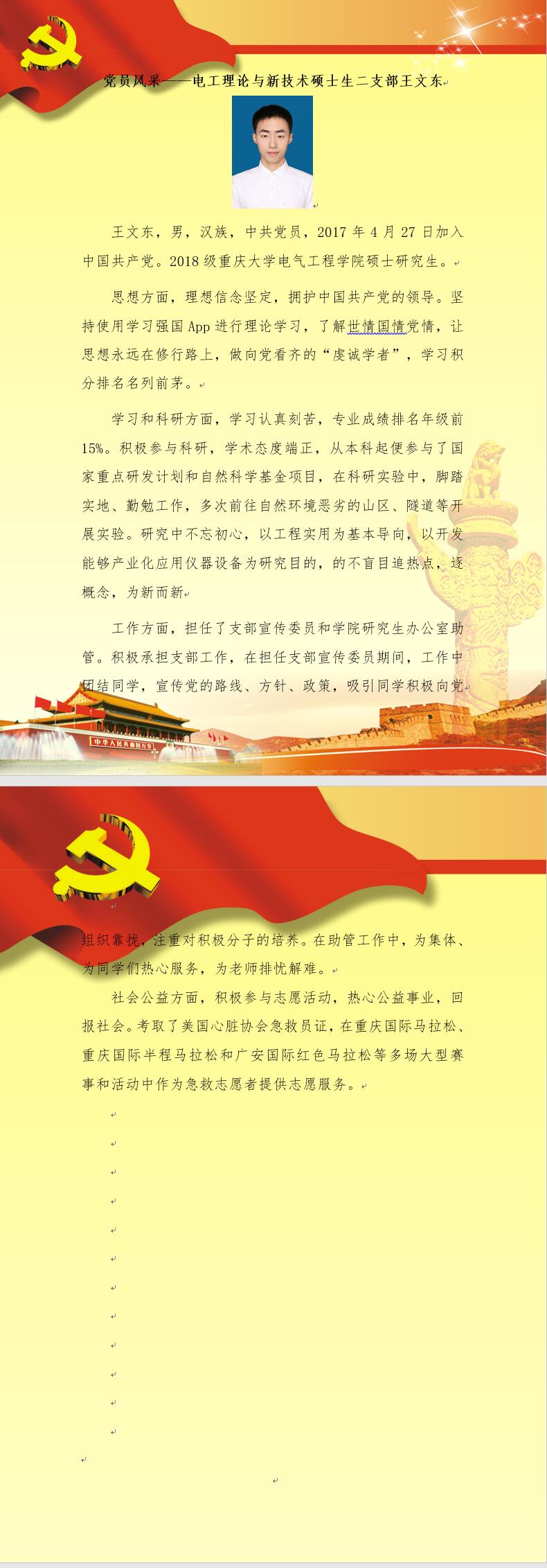 【党员风采】电工理论与新技术硕士生二支部王文东