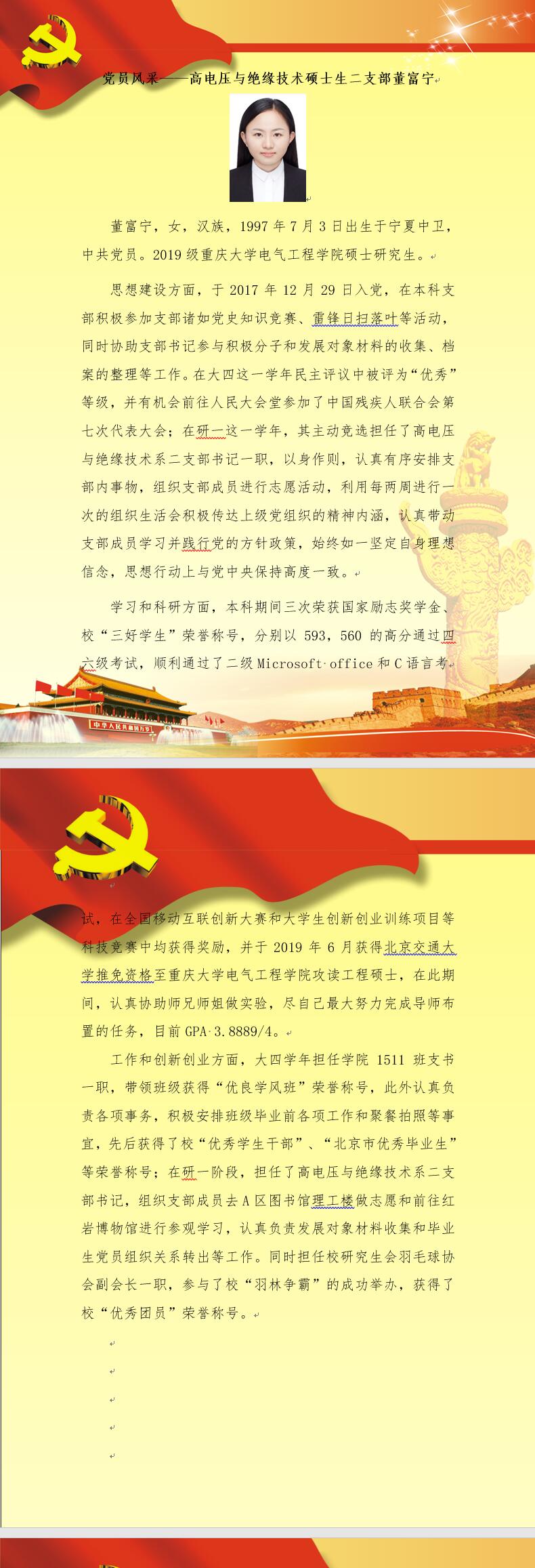 【党员风采】高电压与绝缘技术硕士生二支部董富宁
