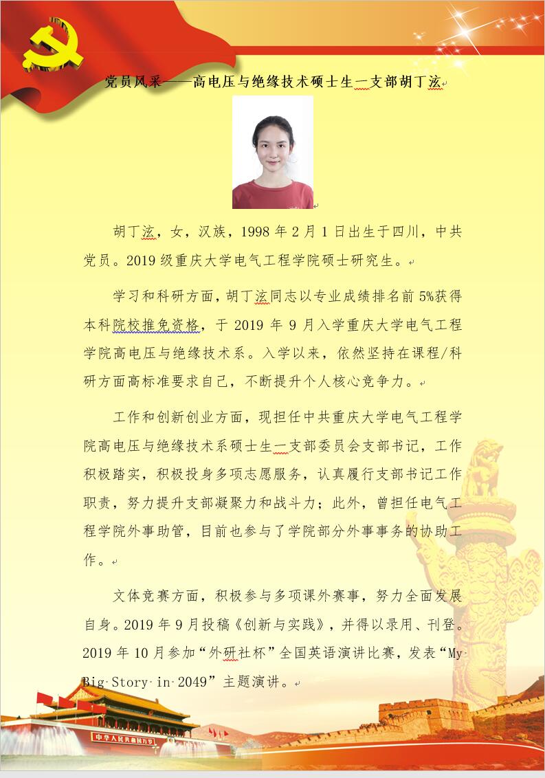 【党员风采】高电压与绝缘技术硕士生一支部胡丁泫