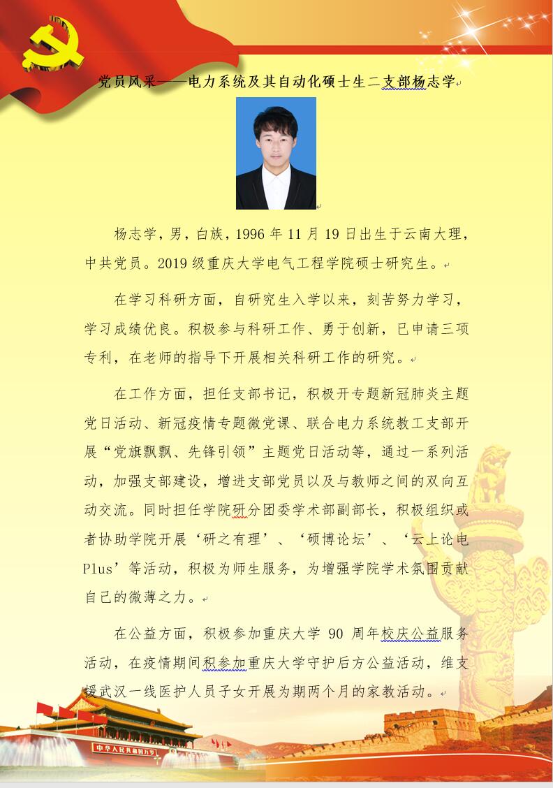 【党员风采】电力系统及其自动化硕士生二支部杨志学