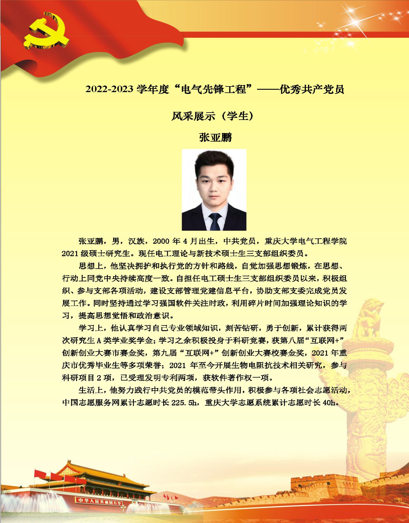 【党员风采】电工理论与新技术系硕士生三支部张亚鹏