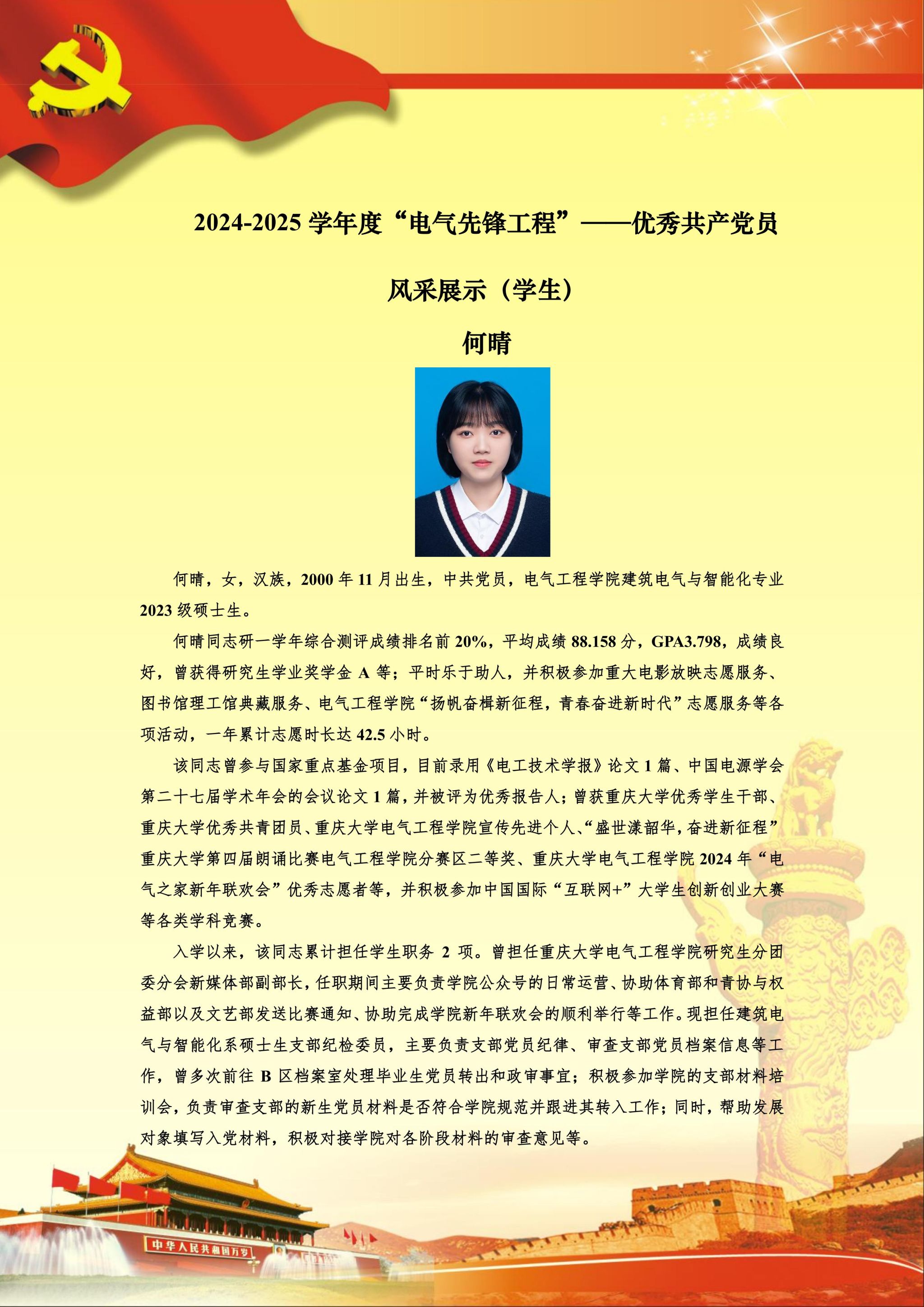 【党员风采】建筑电气与智能化硕士生支部何晴