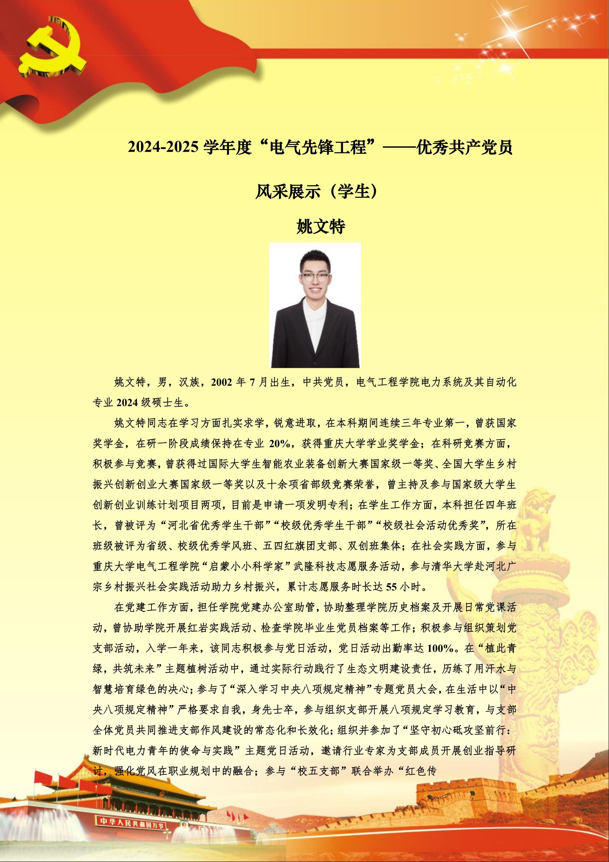 【党员风采】电力系统及其自动化硕士生二支部姚文特