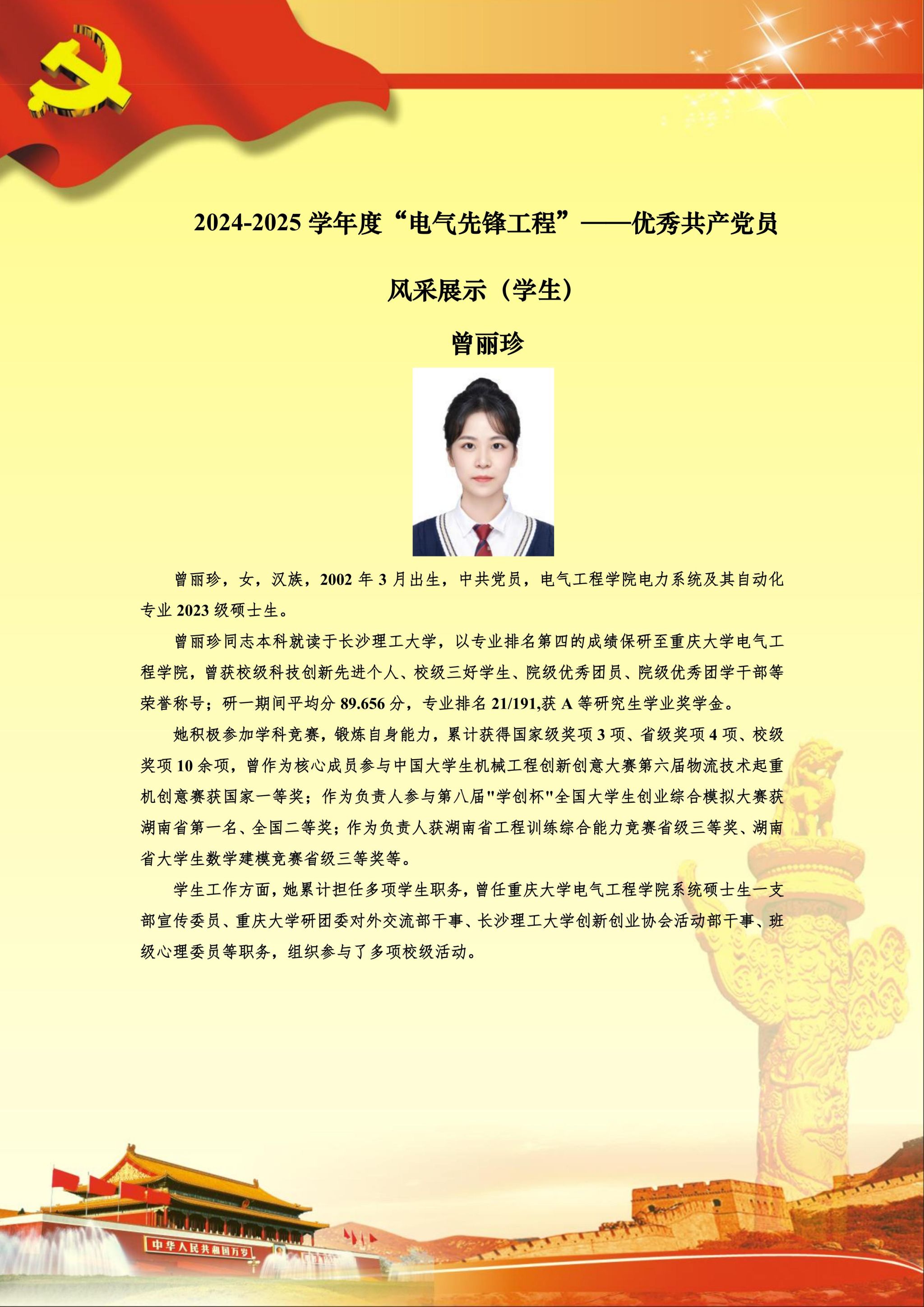 【党员风采】电力系统及其自动化硕士生一支部曾丽珍