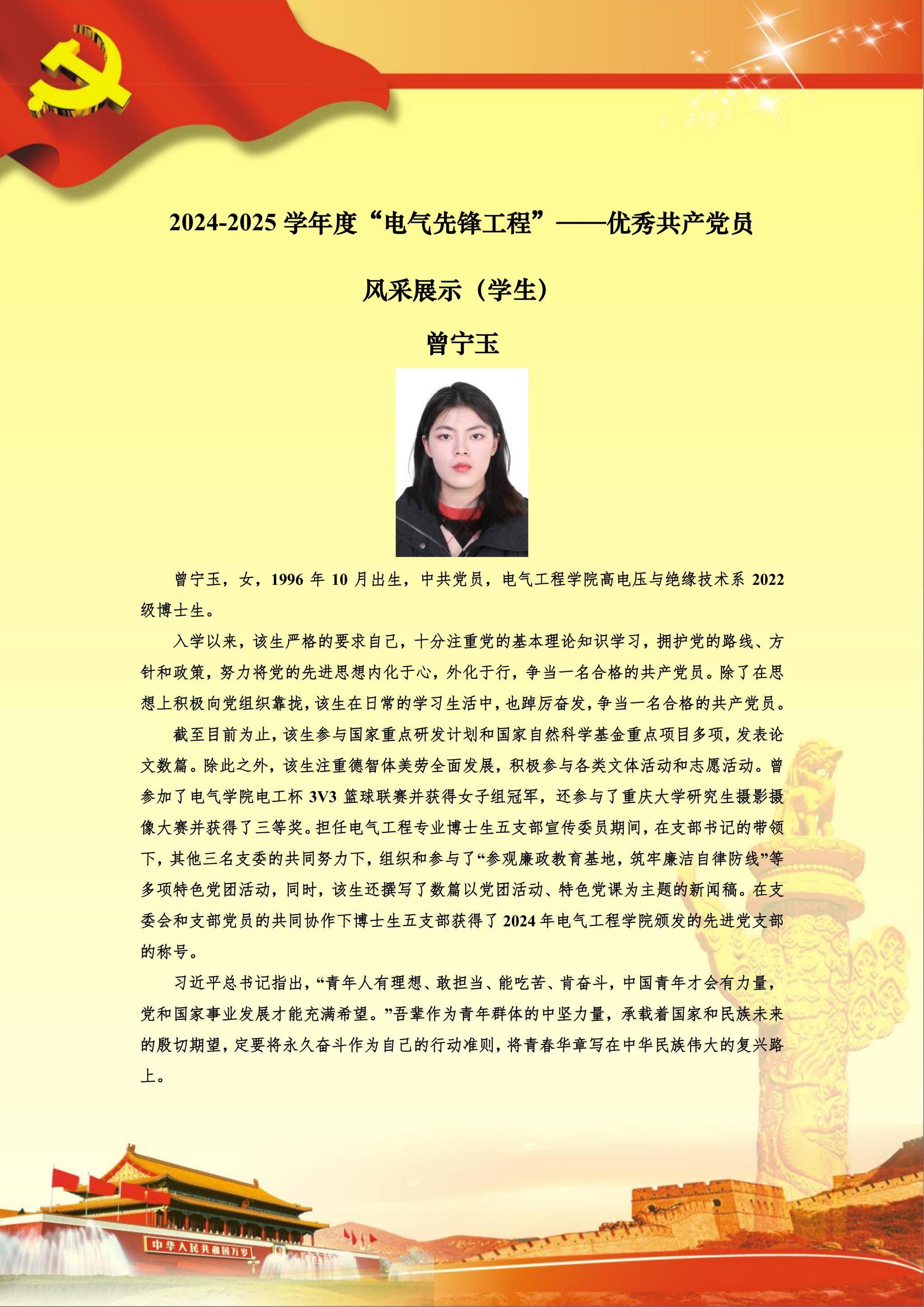 【党员风采】博士生五支部曾宁玉