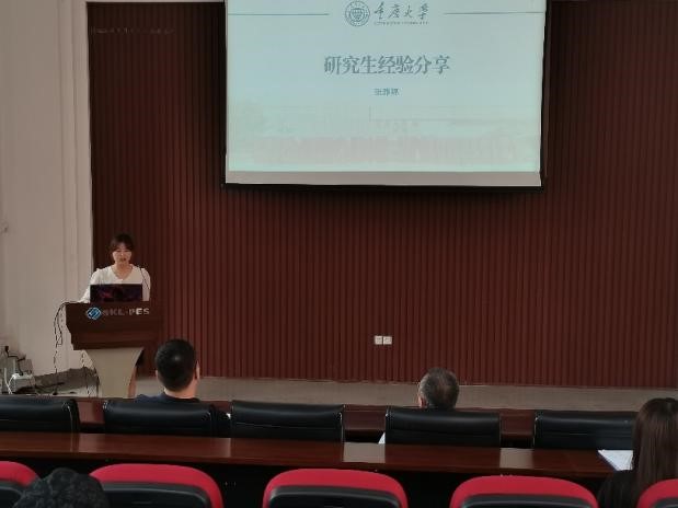 毕业生党员代表王韵从求职前的思考,到求职期间的时间安排、综合考察、简历制作、面试后总结等方面分享了自己的求职经历。她鼓励大家要尽早明确自己的就业方向,结合自己对于地域、薪资、工作强度等方面的就业想法,精准定位求职方向。同时,她建议大家在读研期间也要不断充实自己,做到未雨绸缪。