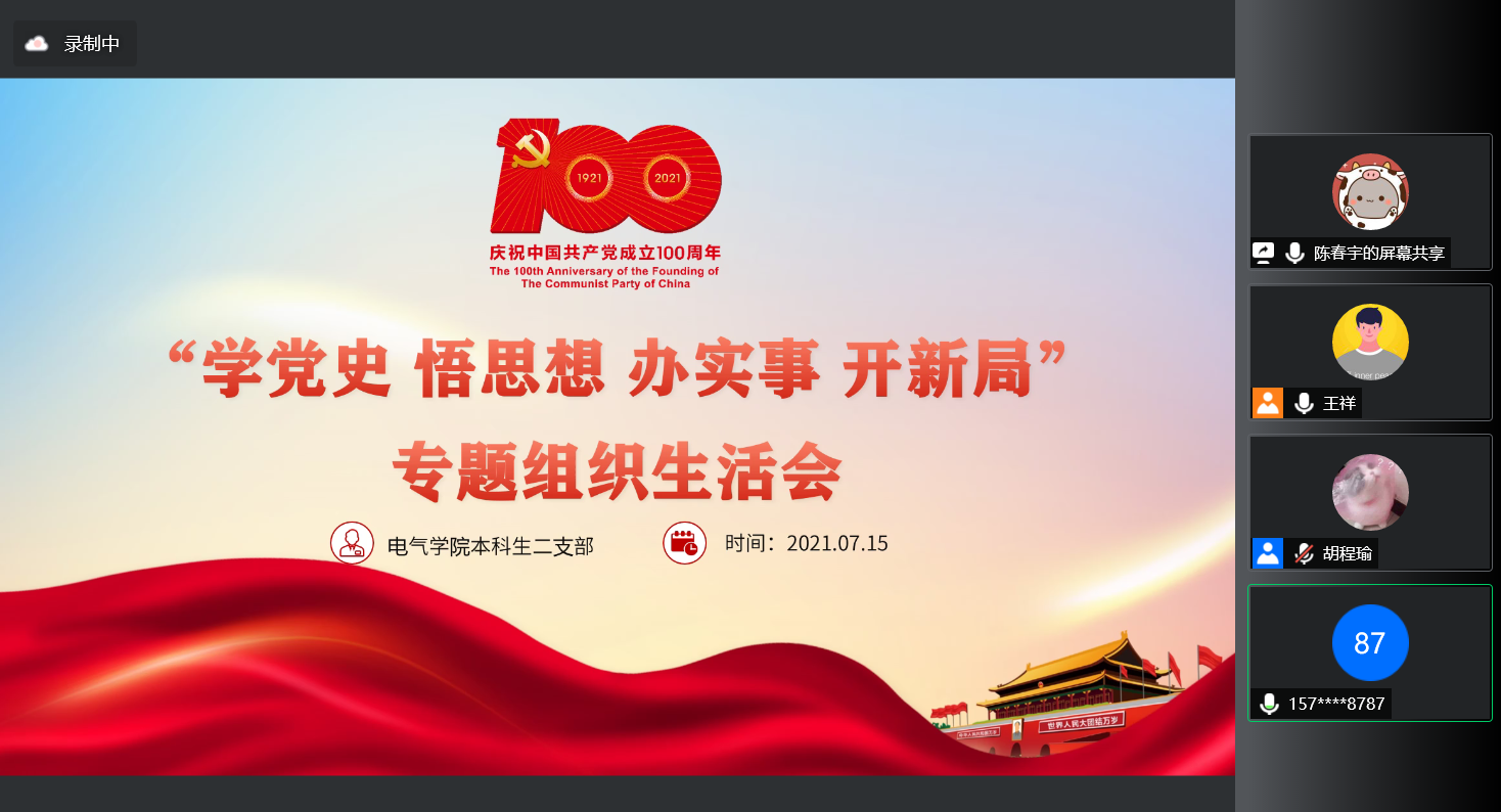 本科生二支部于线上召开2021年春季学期党史学习教育专题组织生活会,会议由支部书记王祥同志主持,支部四名党员参加。
