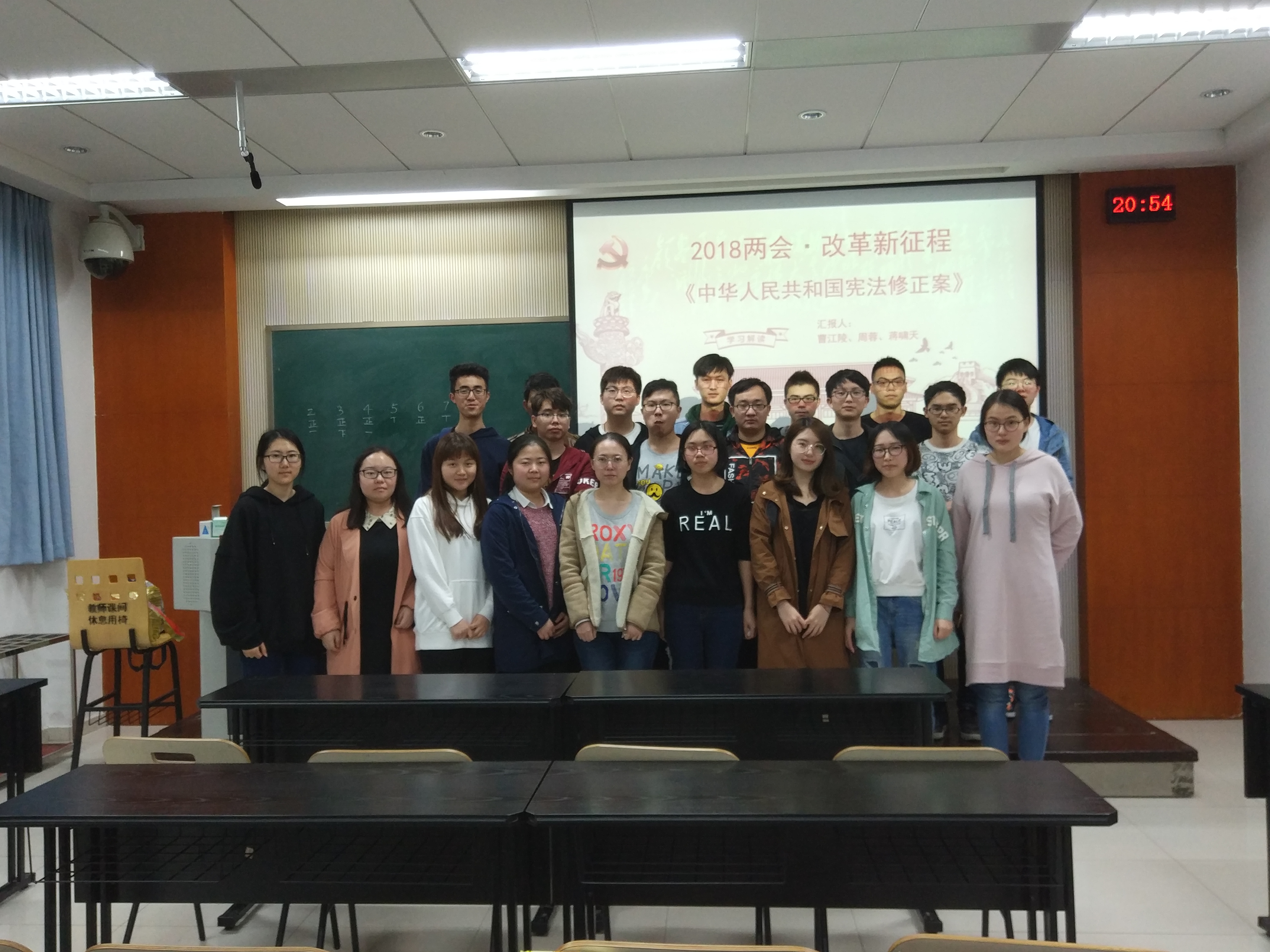本科生二支部举行了学习两会精神、学习宪法修正案的专题党组织生活会。支部全体成员通过观看视频、学习历史资料、主讲人讲解、互动答题等形式,深入系统的了学习了宪法的地位、作用、历次修宪历史和本次宪法修正案的重大意义,了解党中央关于新时代的政策规划,坚定信心,为建设富强民主文明和谐美丽的社会主义现代化强国艰苦奋斗。