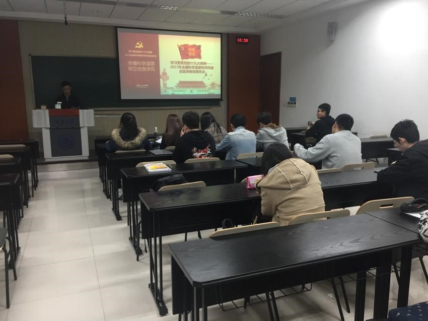 随后,为了加深对于全国科学道德和学风建设宣讲会的认识,全体同学集体观看了该宣讲会的部分内容的视频。在观看视频后,同学们踊跃发言,表达自己的看法。蒋啸天同学表示:“此次报告会是学习贯彻党的十九大精神的一次宣讲,中国科协、教育部联合印发通知进行部署动员、抓好落实,进一步引导广大青年学子和科技工作者遵守学术规范、坚守学术诚信、完善学术人格、维护学术尊严,摒弃学术不端行为,努力成为优良学术道德的践行者和良好学术风气的维护者,为决胜全面建成小康社会、夺取新时代中国特色社会主义伟大胜利、实现中华民族伟大复兴的中国梦、实现人民对美好生活的向往而继续奋斗!”