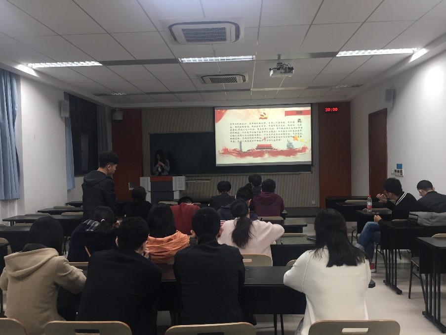 首先赵晓焱同志引领大家回顾了过去五年的工作和历史变革。十八大以来的五年是党和国家发展进程中极不平凡的五年,在复杂的国际国内形势下,我们坚持稳中求进,迎难而上,在经济建设、法制建设、思想文化建设、军队建设、生态文明建设、党的建设等方面取得了重大突破,推动党和国家事业发生历史性变革。由此,党中央作出了两个重大判断:中国特色社会主义进入了新时代,我国社会主要矛盾已经变为人民日益增长的美好生活需要和不平衡不充分的发展之间的矛盾,但是这并没有改变中国的基本国情。于是赵晓焱同志阐释了新时代中国共产党的历史使命。实现中华民族伟大复兴一直是近代以来中华民族最伟大的梦想,为此我们必须不忘初心、牢记使命,坚持进行伟大斗争、建设伟大工程、推进伟大事业。党的十九大将习近平新时代中国特色社会主义思想写入党章,这是对马克思列宁主义、毛泽东思想、邓小平理论、“三个代表”重要思想、科学发展观的继承和发展,是马克思主义中国化的最新成果,必须长期坚持和不断发展。此外,十九大开启了全面建设社会主义现代化国家的新征程,从二〇二〇年到本世纪中叶分成“两步走”战略,逐步把我国建成富强民主文明和谐美丽的社会主义现代化强国。