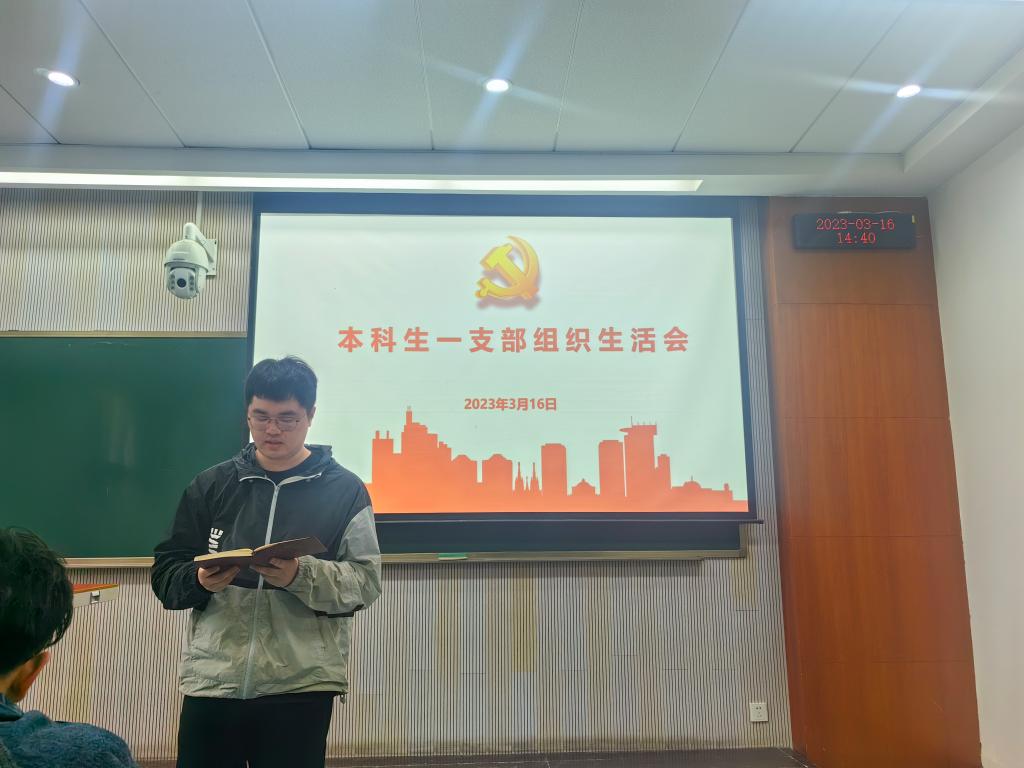 本科生一支部开展组织生活会,进行支部测评和民主评议党员,会议由支部书记王祥主持,本科生一支部全体党员参加。