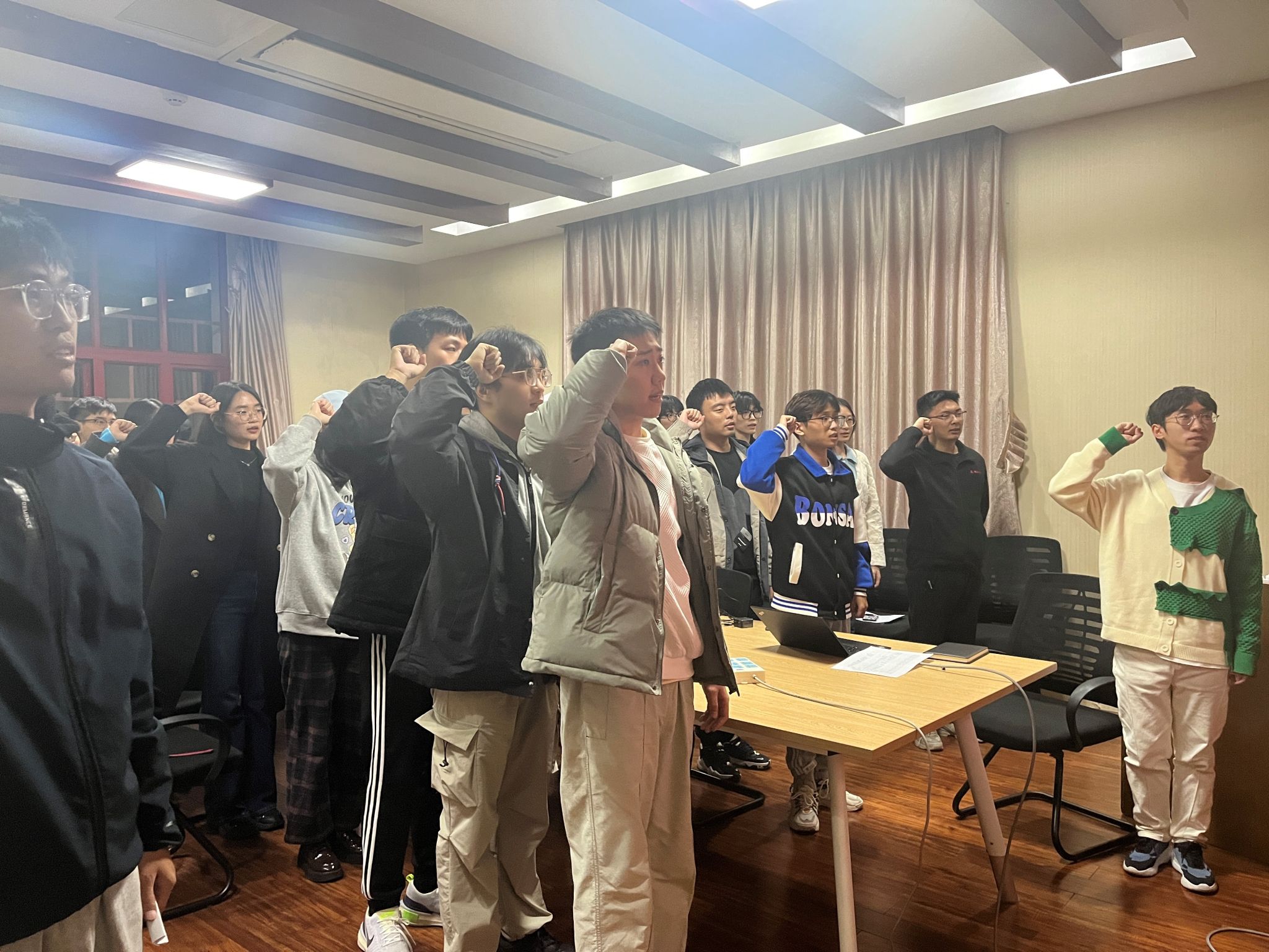 分享结束后,在喻昌立同志的带领下,全体同学庄严宣誓,重温入党誓词,表达对党的忠诚和对人民的赤诚,也将入党初心和使命深深地铭刻在心中。