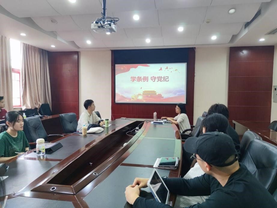 本科生三支部支部书记陈思思以“学条例 守党纪”为题,在学院A6327会议室为全体支部党员讲授党纪学习教育专题党课。