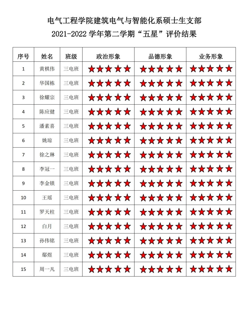 无码av 建筑电气支部2021-2022学年第二学期“五星评价结果”
