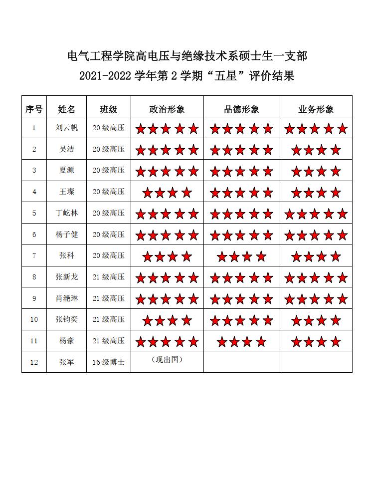 无码av 建筑电气支部2021-2022学年第二学期“五星评价结果”