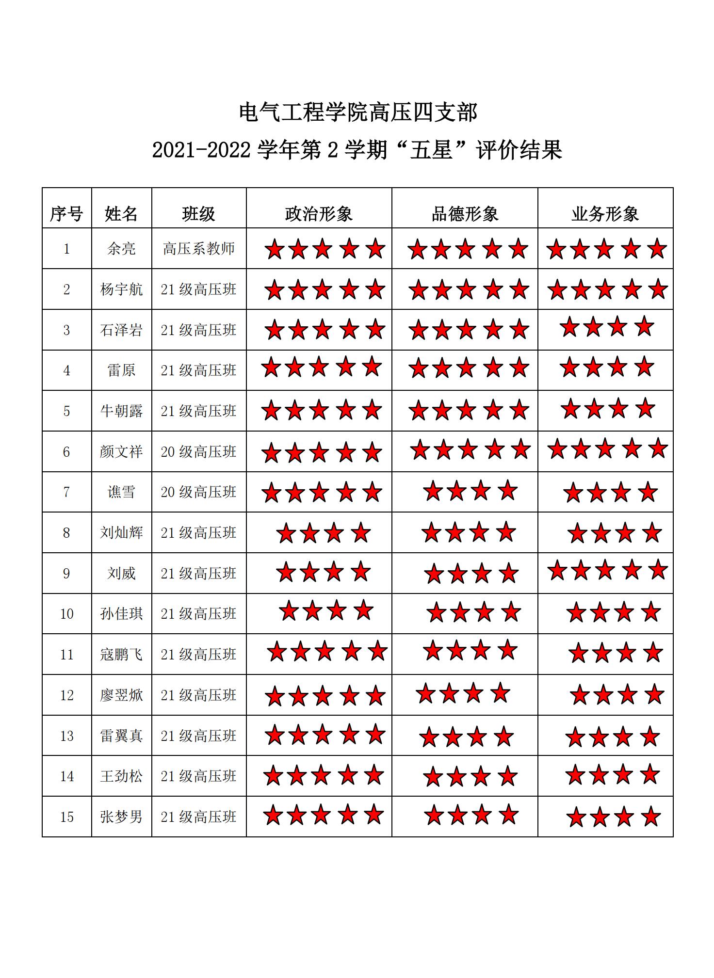 无码av 高压四支部2021-2022学年第二学期“五星评价结果”