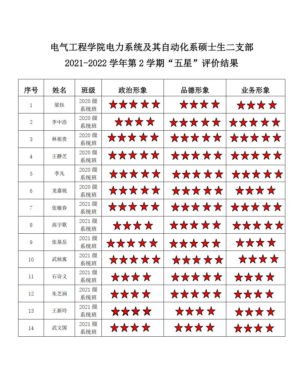 无码av 电力系统二支部2021-2022学年第二学期“五星评价结果”