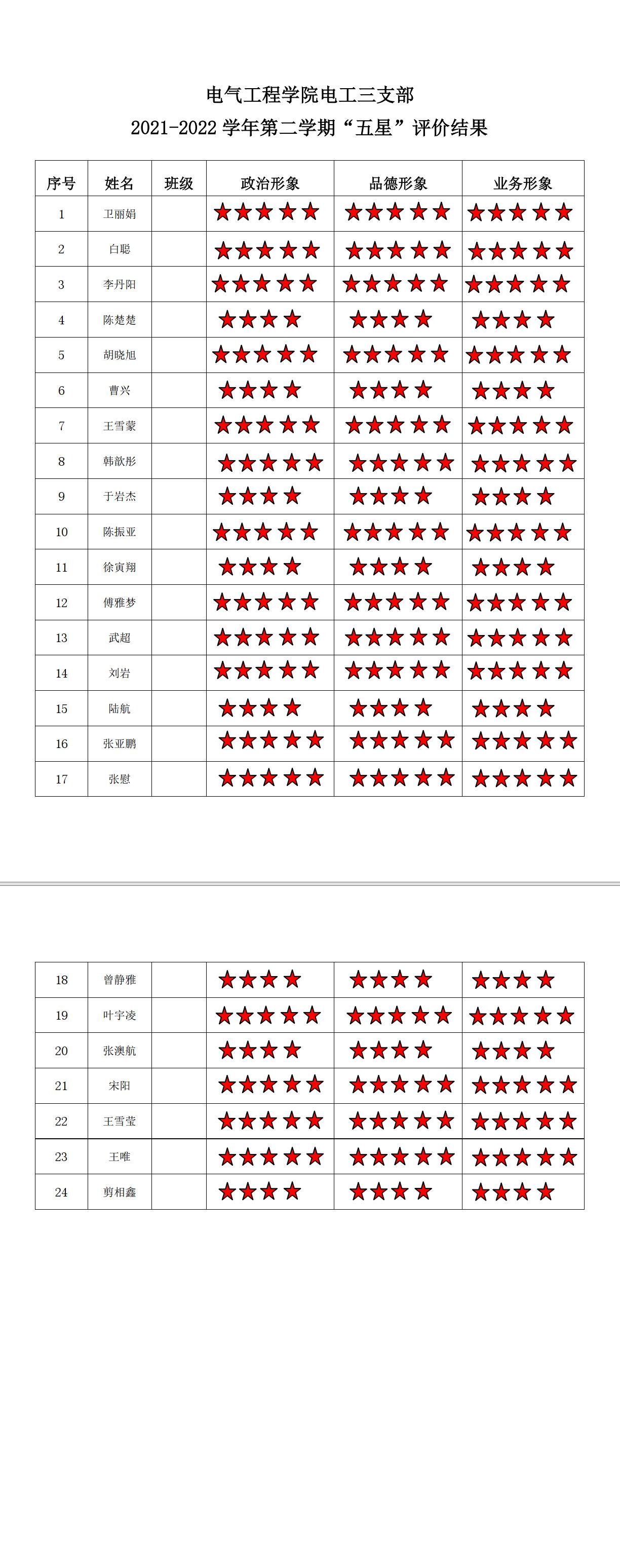 无码av 电工二支部2021-2022学年第二学期“五星评价结果”
