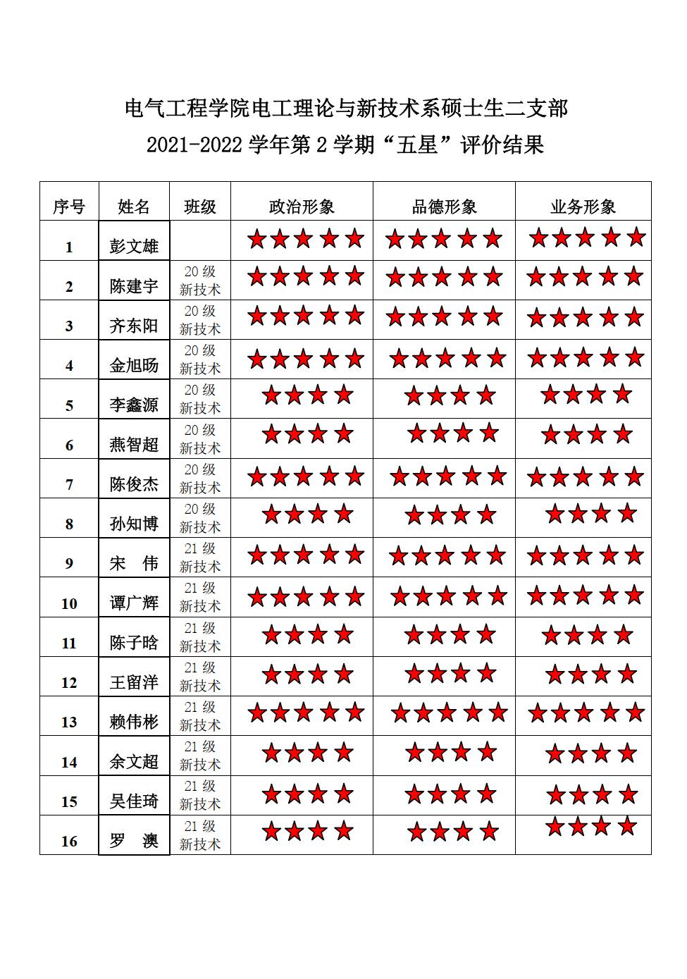 无码av 电工二支部2021-2022学年第二学期“五星评价结果”