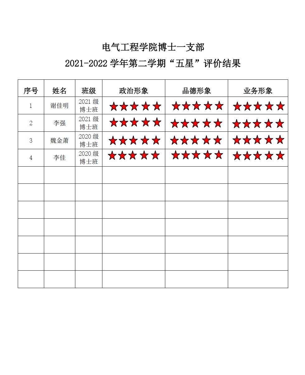 无码av 电工二支部2021-2022学年第二学期“五星评价结果”