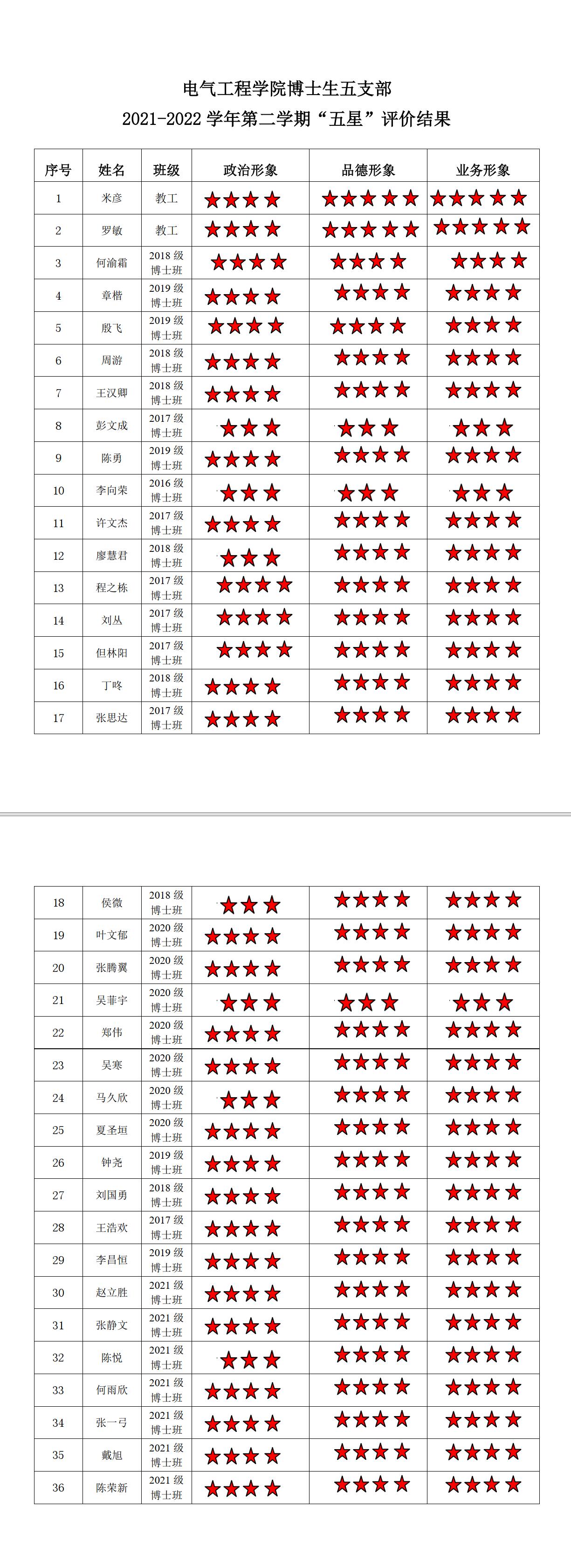 无码av 博士生一支部2021-2022学年第二学期“五星评价结果”