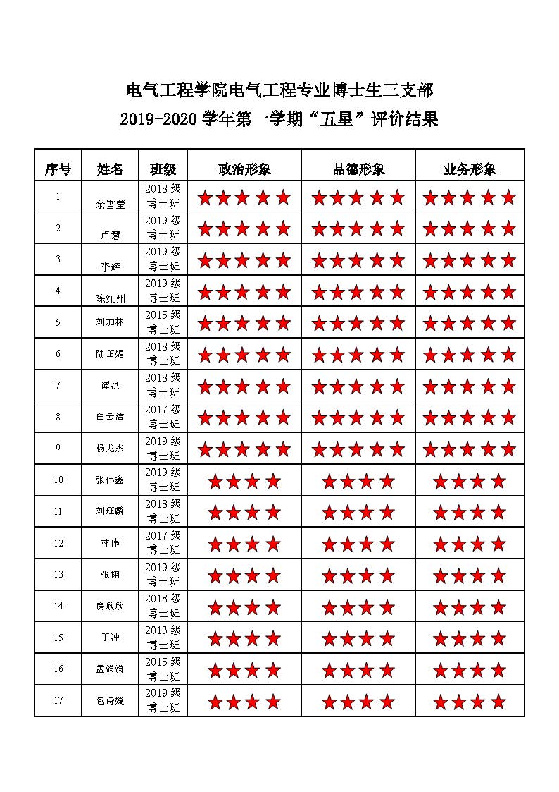 无码av 博士四支部2019-2020学年第1学期“五星”评价结果