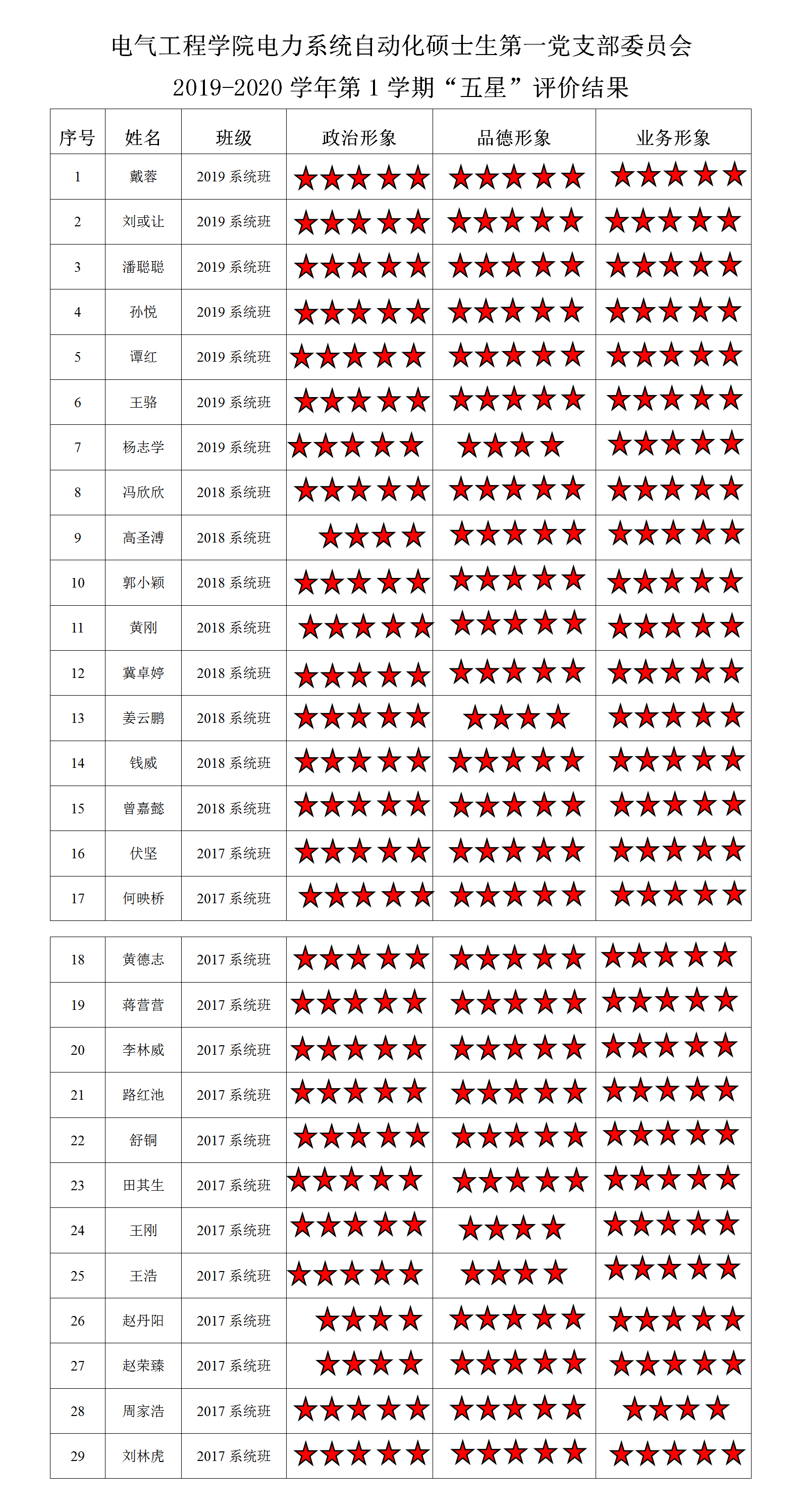 无码av 电力系统及其自动化系硕士第三支部 2019-2020学年第1学期“五星”评价结果