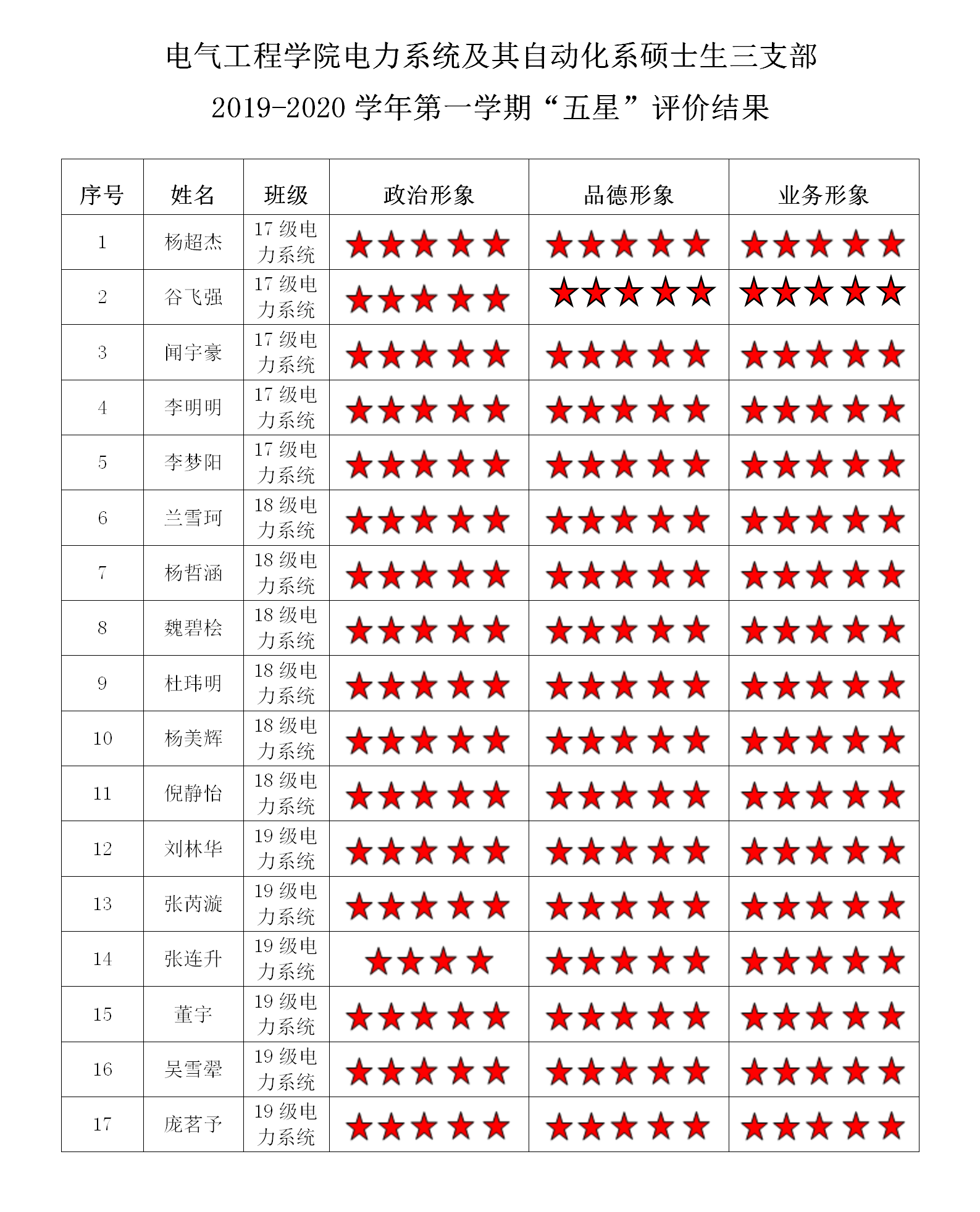 无码av 电力系统及其自动化系硕士第三支部 2019-2020学年第1学期“五星”评价结果