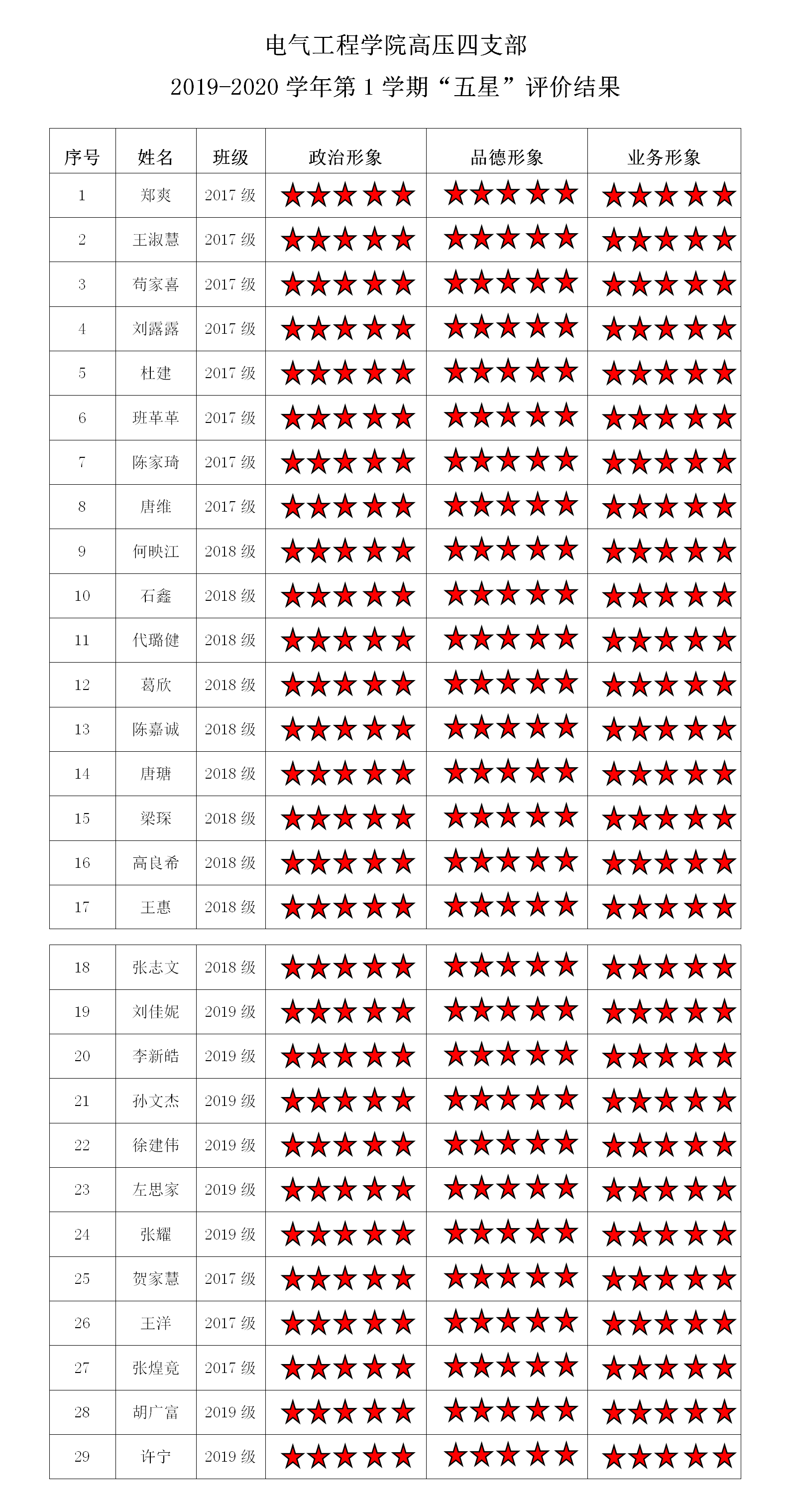 无码av 高电压与绝缘技术第四支部 2019-2020学年第1学期“五星”评价结果