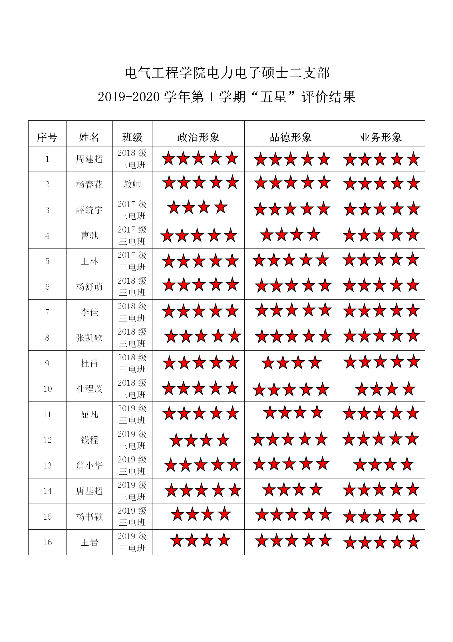 无码av 电力电子系硕士第二支部 2019-2020学年第1学期“五星”评价结果