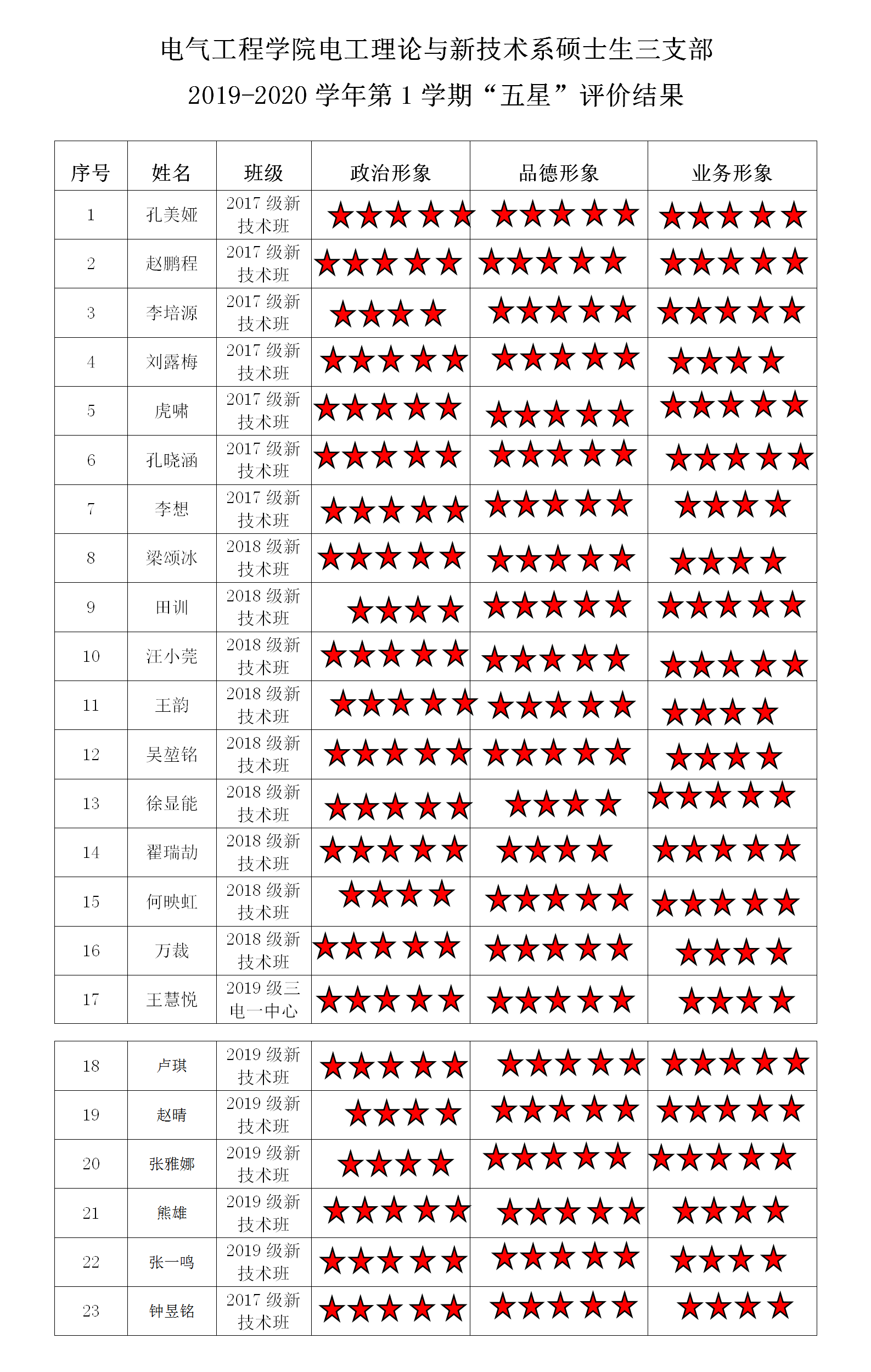 无码av 电工理论与新技术系第一支部 2019-2020学年第1学期“五星”评价结果
