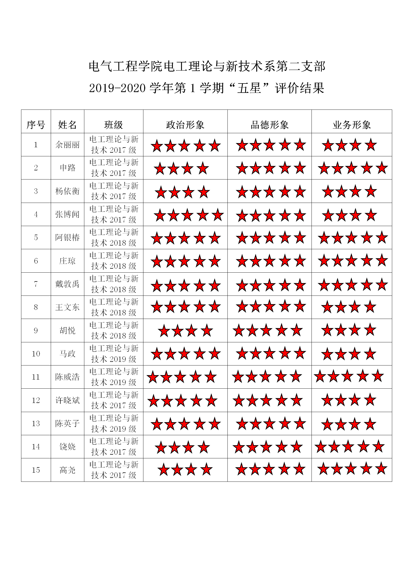 无码av 电工理论与新技术系第二支部 2019-2020学年第1学期“五星”评价结果
