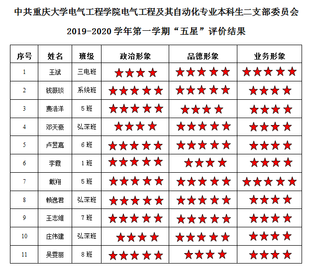 无码av 本科生二支部2019-2020学年第一学期 “五星”评价结果