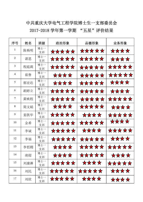 中共无码av 博士生一支部委员会 2017-2018学年第一学期 “五星”评价结果