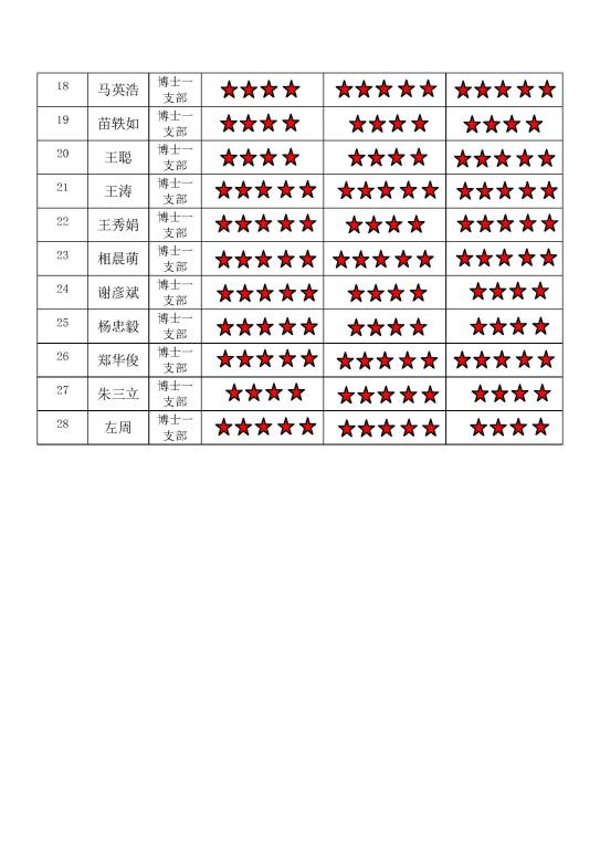 中共无码av 博士生五支部委员会 2017-2018学年第一学期 “五星”评价结果