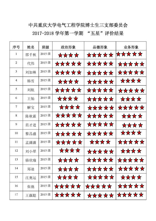 中共无码av 博士生三支部委员会 2017-2018学年第一学期 “五星”评价结果