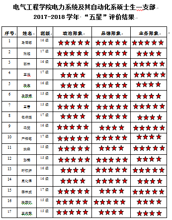 中共无码av 电力系统及其自动化系硕士生一支部2017-2018学年 “五星”评价结果